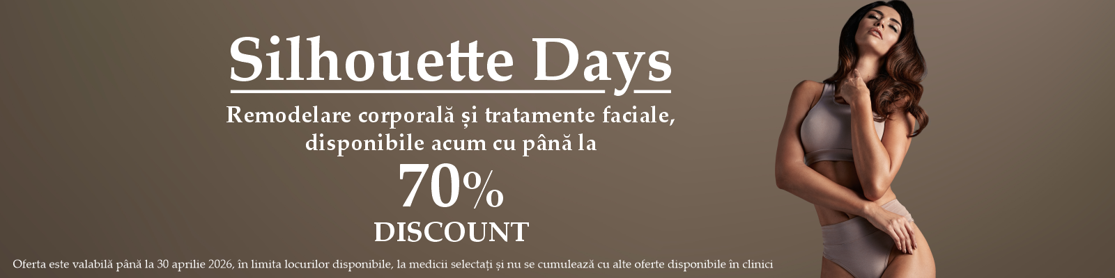 Promoție valabilă în perioada 1 - 30 aprilie 2026, în limita locurilor disponibile. Tratamentele trebuie efectuate în termen de 3 luni de la achiziționare.